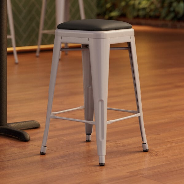 Alloy Silver Indoor Backless Counter Height Stool with Black Vinyl Cushion
