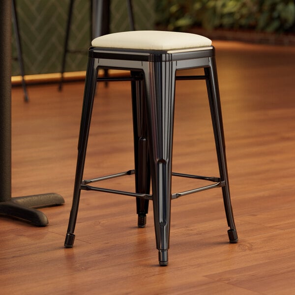 Alloy Onyx Black Indoor Backless Barstool with White Vinyl Cushion