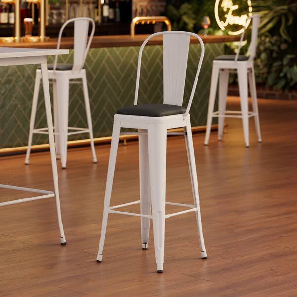 Alloy Pearl White Indoor Cafe Barstool with Black Vinyl Cushion