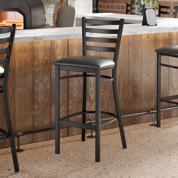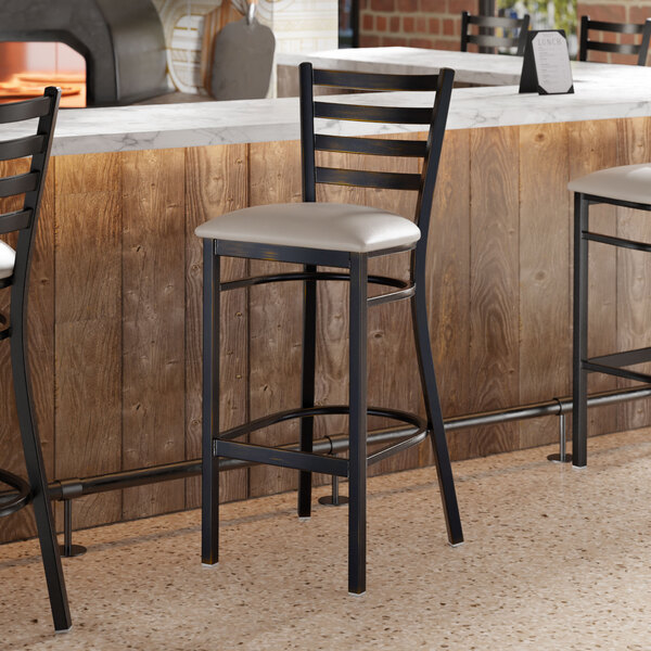 Vintage Finish Wood Ladder Back Bar Stool with Black Vinyl Seat - Assem...