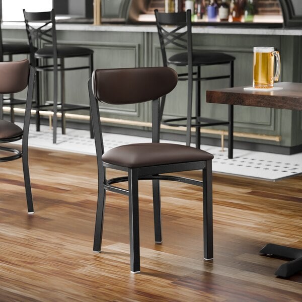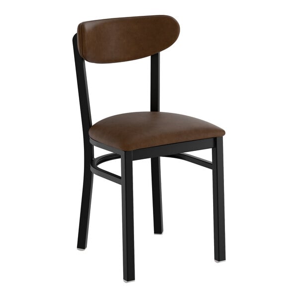 Boomerang Black Finish Chair with Dark Brown Vinyl Seat and Driftwood Back