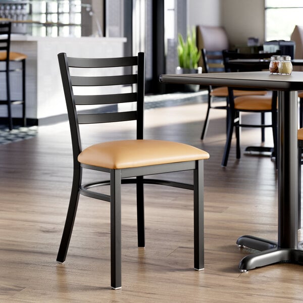 Vintage Finish Wood Ladder Back Chair with Black Vinyl Seat - Detached ...