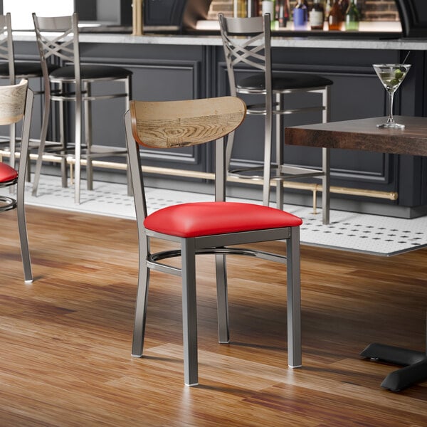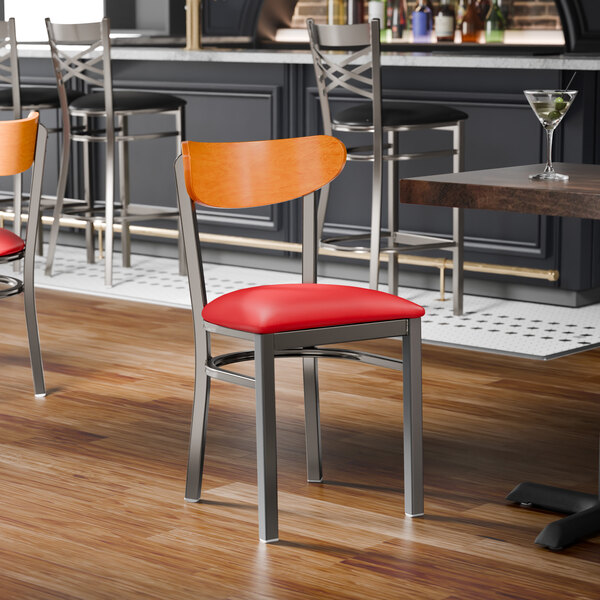 Boomerang Clear Coat Finish Chair with Dark Gray Vinyl Seat and Cherry ...
