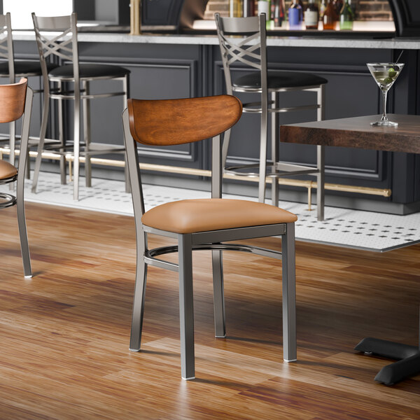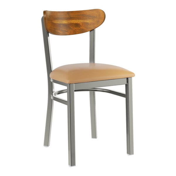 Boomerang Clear Coat Finish Chair with Taupe Vinyl Seat and Cherry Wood...