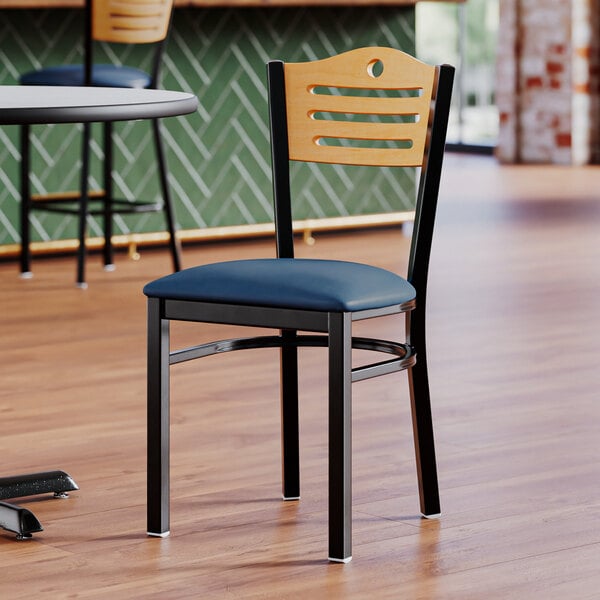 Boomerang Black Finish Chair with Navy Vinyl Seat and Cherry Wood Back
