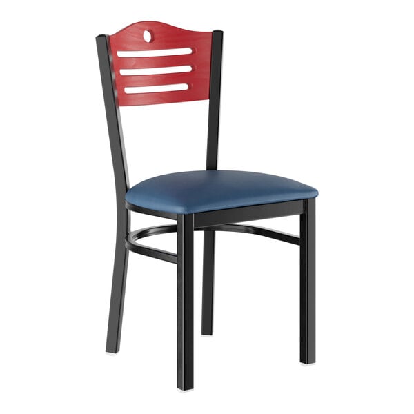Black Finish Side Chair with Navy Vinyl Seat and Mahogany Wood Back - A...