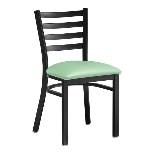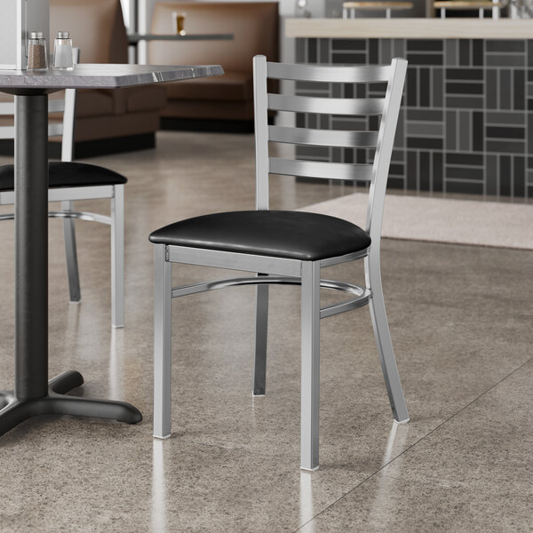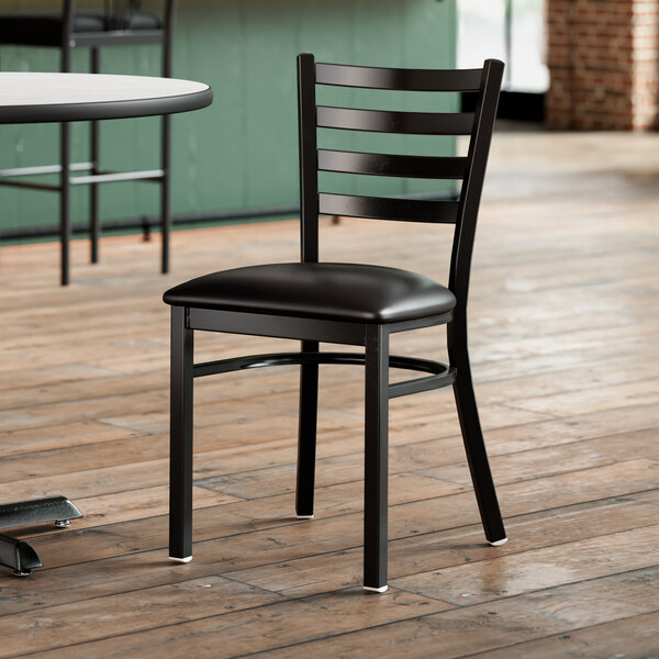 Vintage Finish Wood Ladder Back Chair with Black Vinyl Seat - Detached ...