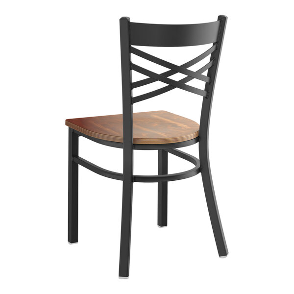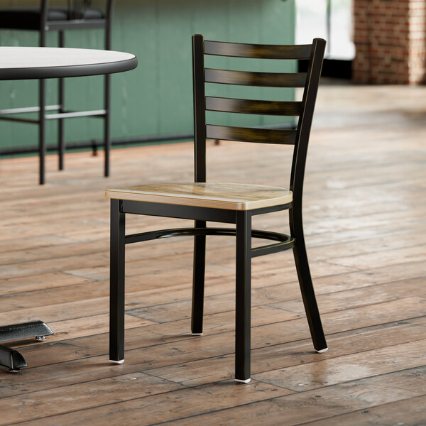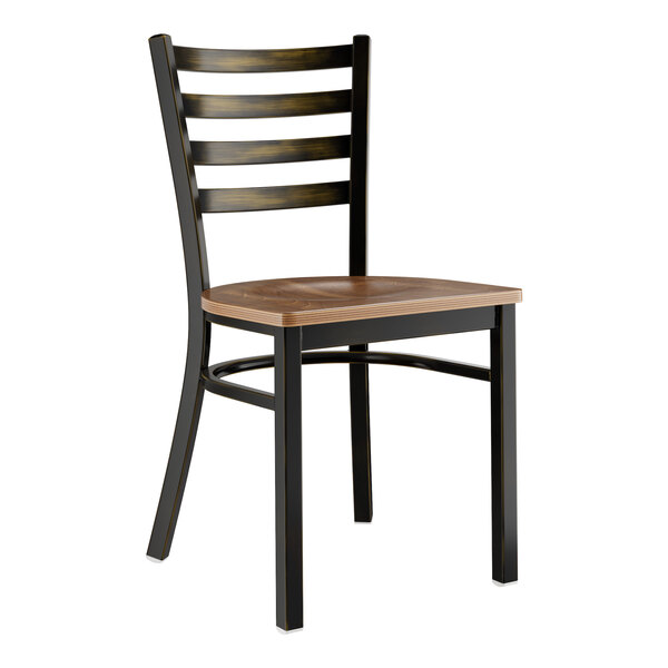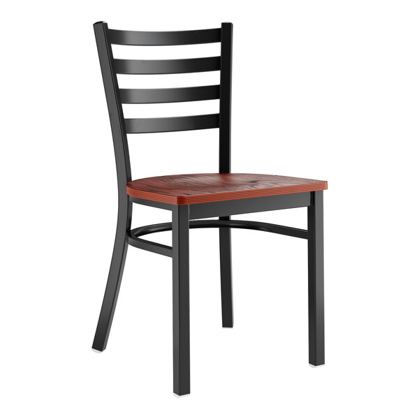 Spartan Metal Ladder Back Chair with Mahogany Wood Grain Finish and Bla...