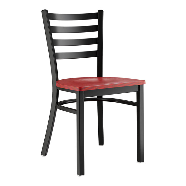 Spartan Metal Ladder Back Chair with Mahogany Wood Grain Finish and Red...