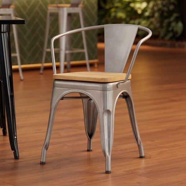 Alloy Silver Indoor Arm Chair with Black Vinyl Cushion