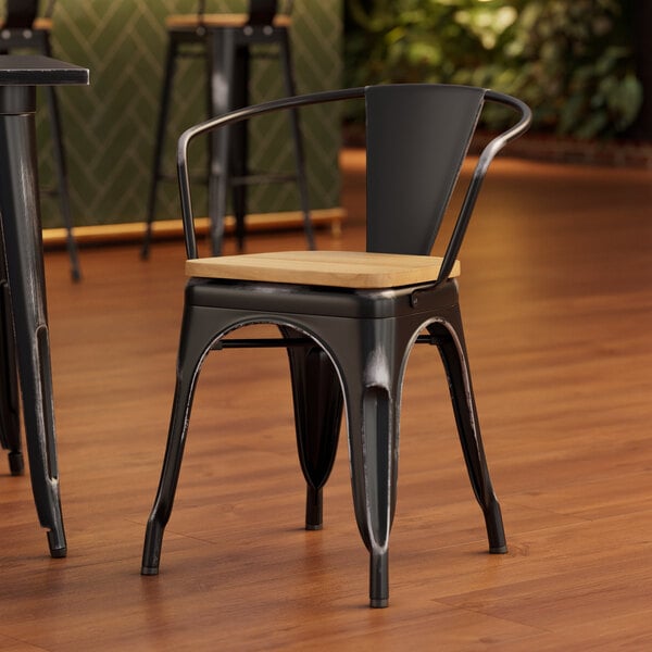 Boomerang Black Finish Chair with Black Vinyl Seat and Driftwood Back
