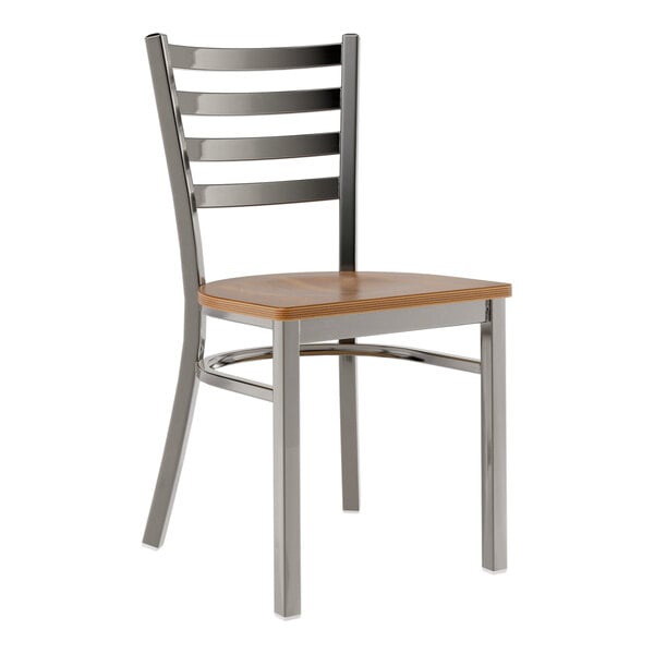 Spartan Metal Ladder Back Chair with Mahogany Wood Grain Finish and Nav...