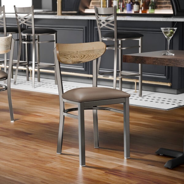 Boomerang Clear Coat Finish Chair with Taupe Vinyl Seat and Driftwood Back