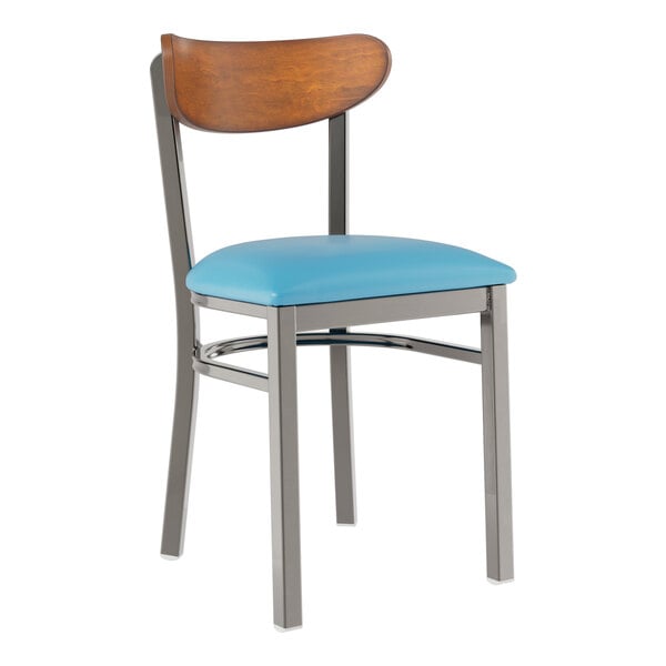 Boomerang Clear Coat Finish Chair with Blue Vinyl Seat and Antique Waln...