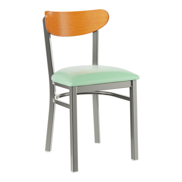 Boomerang Clear Coat Finish Chair with Blue Vinyl Seat and Cherry Wood ...