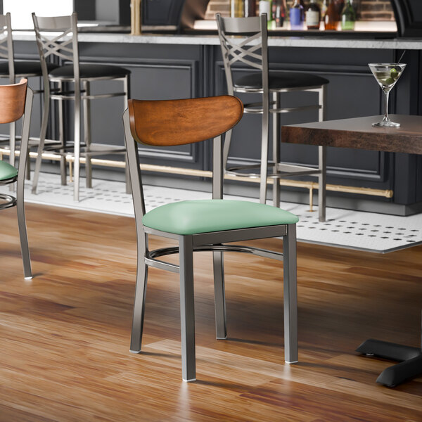 Boomerang Black Finish Chair with Green Vinyl Seat and Cherry Wood Back