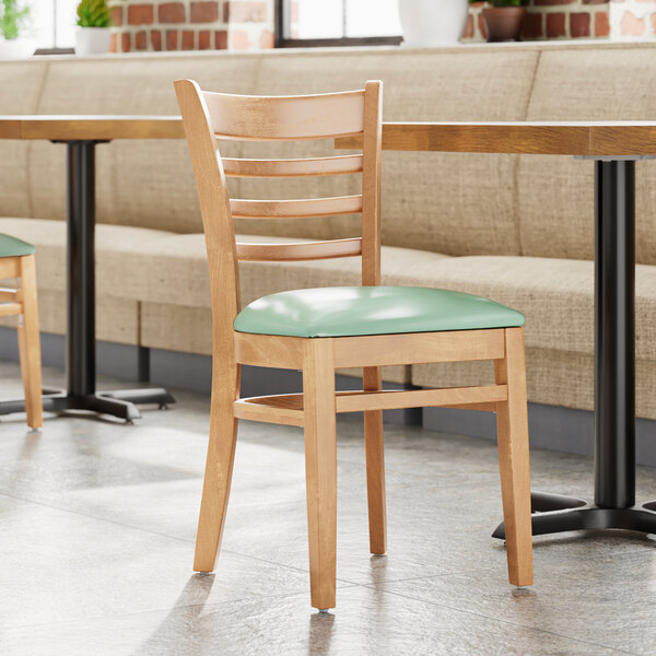 Vintage Finish Wood Ladder Back Chair with Light Brown Vinyl Seat - Det...