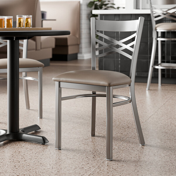 Alloy Silver Indoor Arm Chair with Tan Fabric Magnetic Cushion