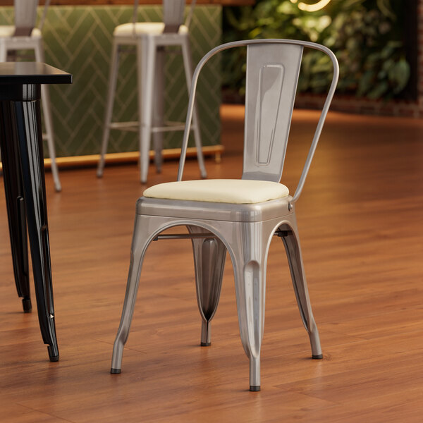 Alloy Silver Indoor Arm Chair with White Vinyl Cushion