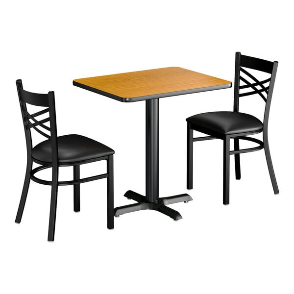 30" x 48" Reversible Cherry / Black Standard Height Dining Set with Bla...