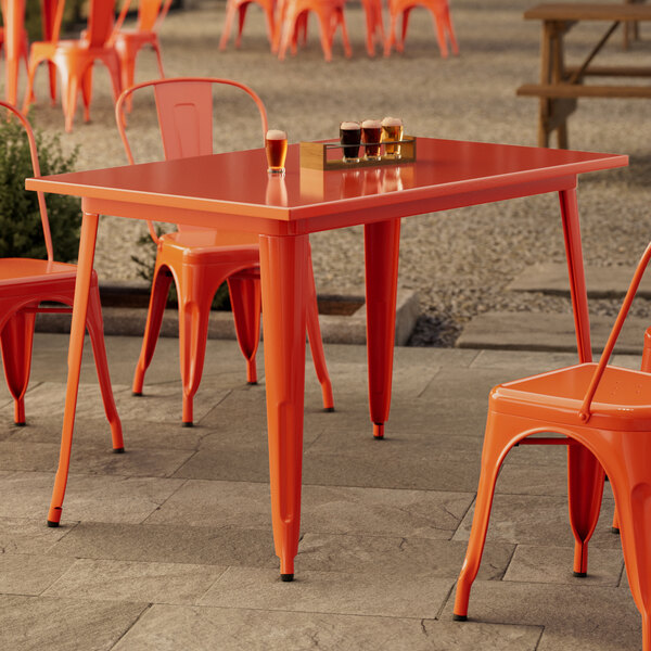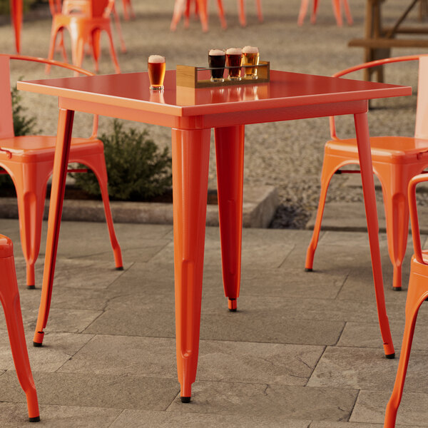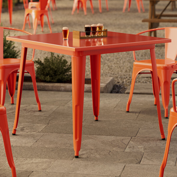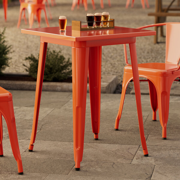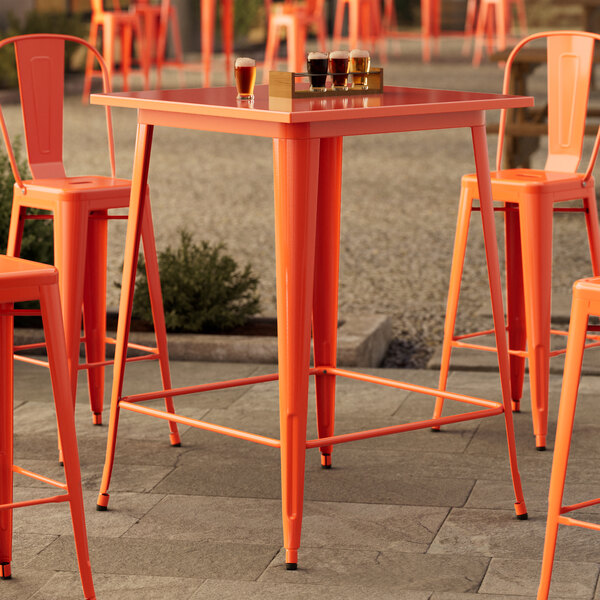Alloy Series 24" x 24" Amber Orange Bar Height Outdoor Table