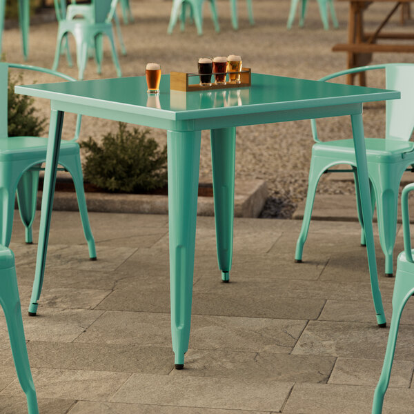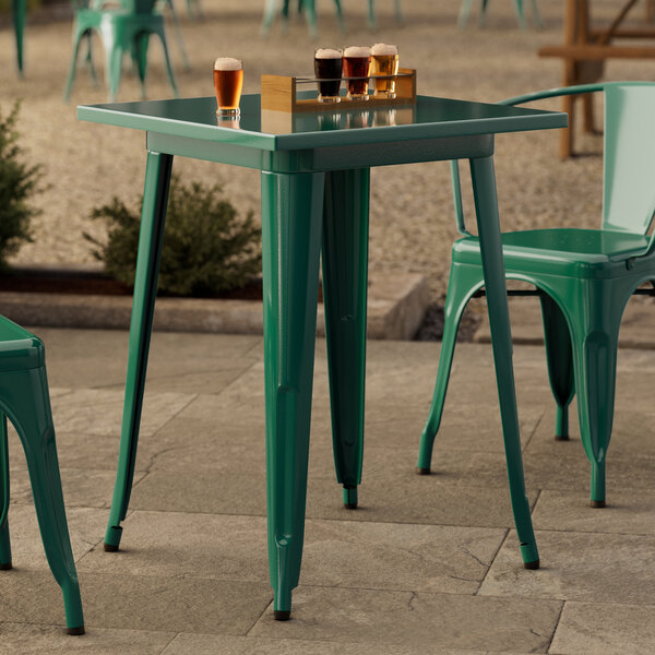 Alloy 24" x 24" Emerald Green Bar Height Outdoor Table