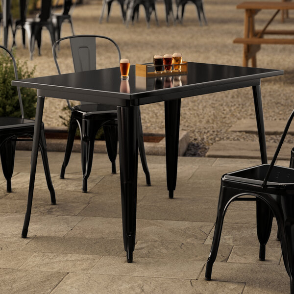 Alloy Series 48" x 30" Rectangular Onyx Black Bar Height Outdoor Table