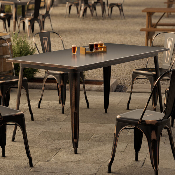 Alloy 48" x 30" Rectangular Distressed Copper Bar Height Outdoor Table