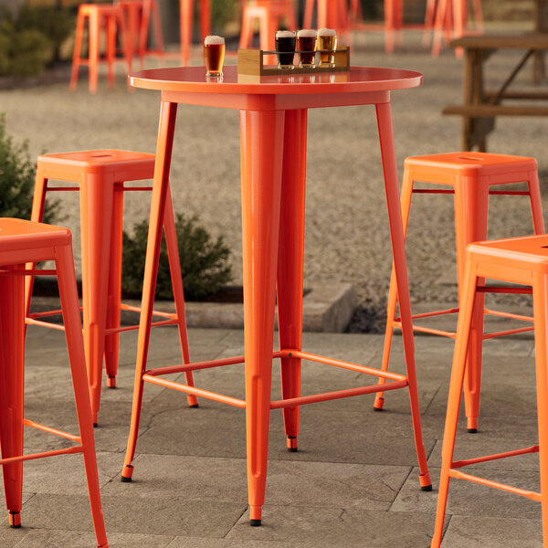 Alloy Series 30" Round Amber Orange Bar Height Outdoor Table