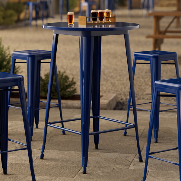 Alloy Series 30" Round Blue Quartz Bar Height Outdoor Table