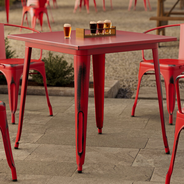 Alloy Series 24" x 24" Ruby Red Bar Height Outdoor Table
