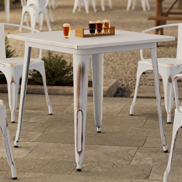 Alloy 24" x 24" Pearl White Bar Height Outdoor Table