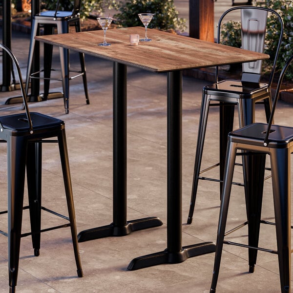 Alloy 48" x 30" Rectangular Distressed Onyx Black Bar Height Outdoor Table