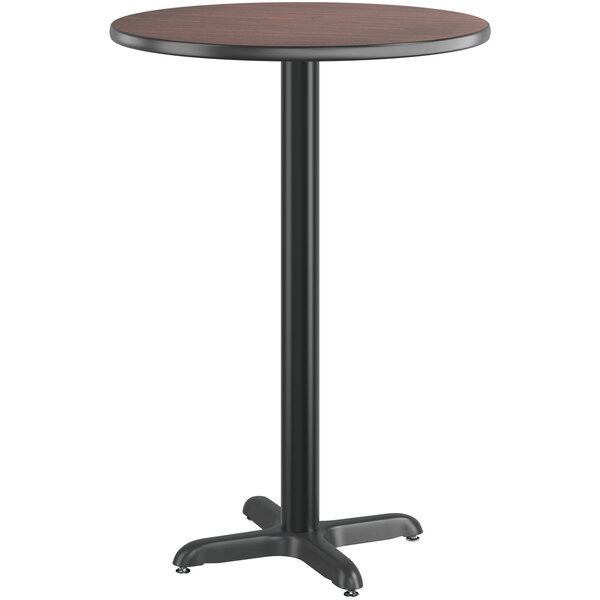 30" Round Thermo-Formed MDF Bar Height Table with Dark Walnut Finish