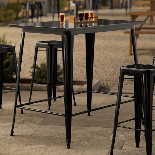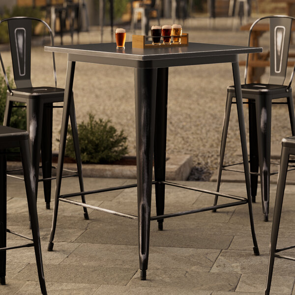 Alloy 24" x 24" Distressed Onyx Black Bar Height Outdoor Table
