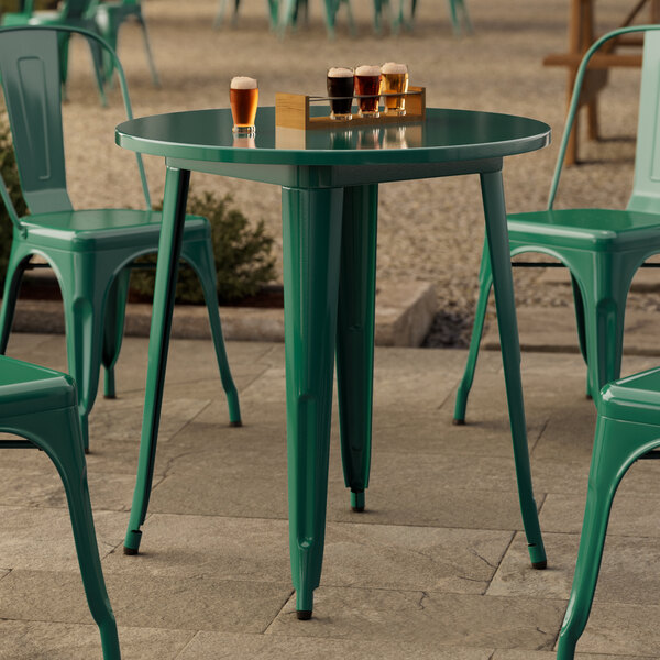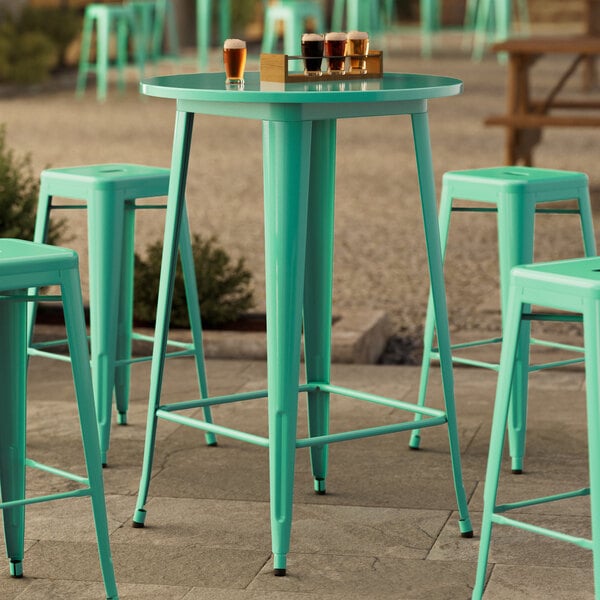 Alloy 30" Round Emerald Green Bar Height Outdoor Table