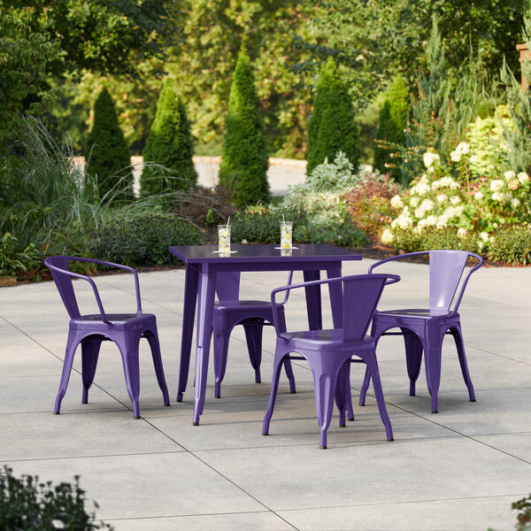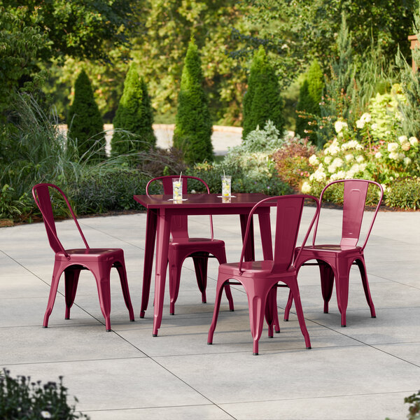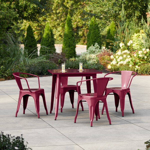 Alloy 23 1/2" x 23 1/2" Ruby Red Standard Height Outdoor Table with 2 A...