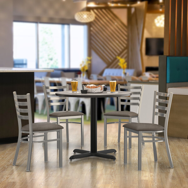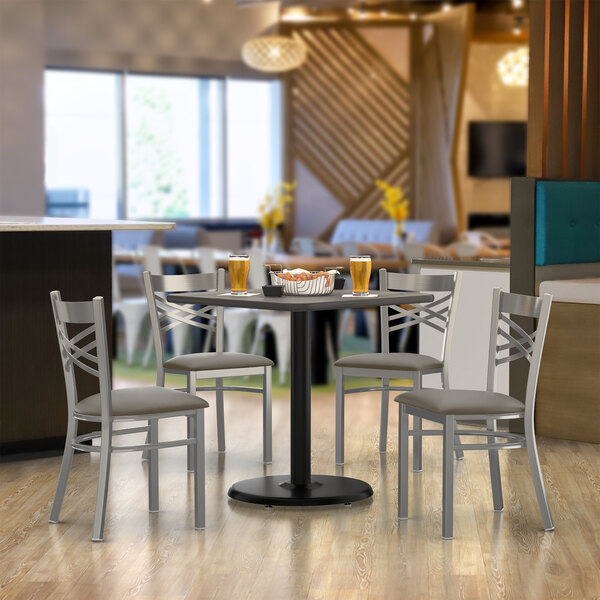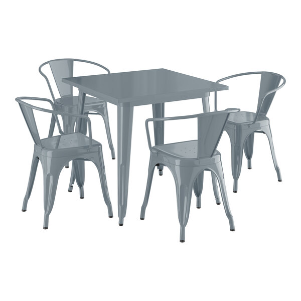 Alloy 30" x 48" Nickel Gray Standard Height Indoor Table and 4 Arm Chai...