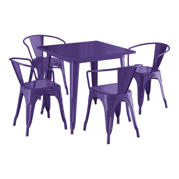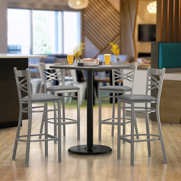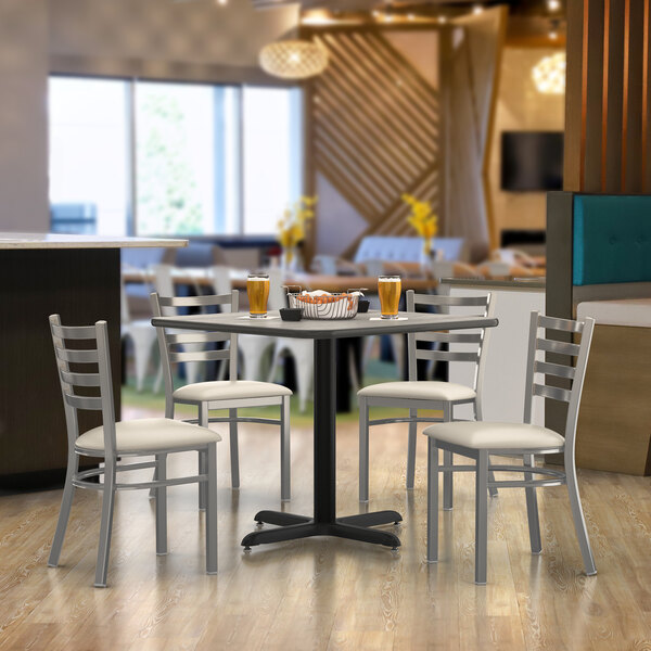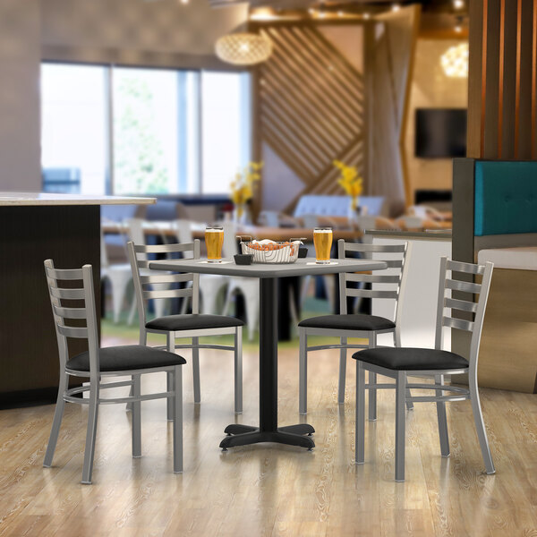 Alloy 32" x 32" Onyx Black Standard Height Indoor Table and 4 Arm Chair...