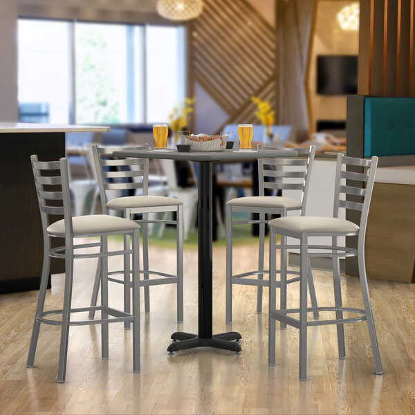 30" x 48" Reversible White / Gray Slate Bar Height Table with 4 Ladder ...