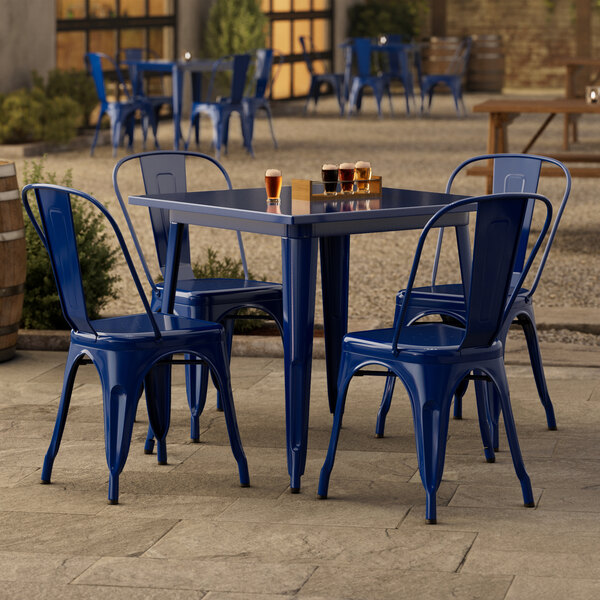 Alloy 31 1/2" x 31 1/2" Sapphire Standard Height Outdoor Table with 4 A...