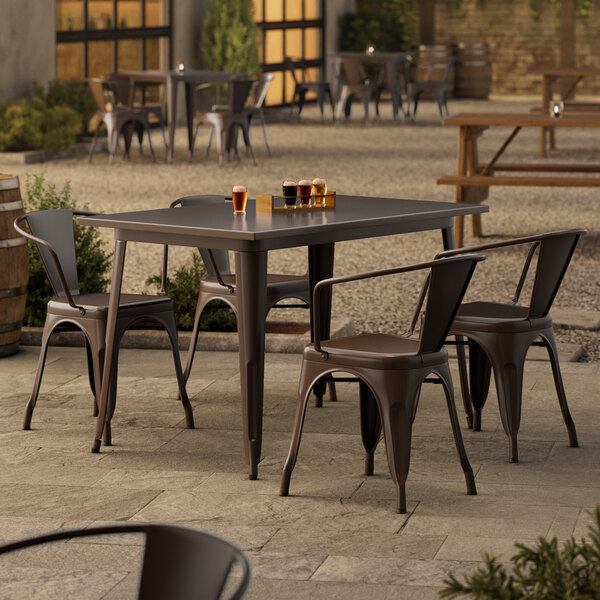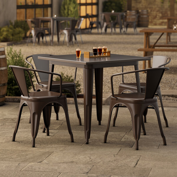 Alloy 23 1/2" x 23 1/2" Copper Standard Height Outdoor Table with 2 Arm...