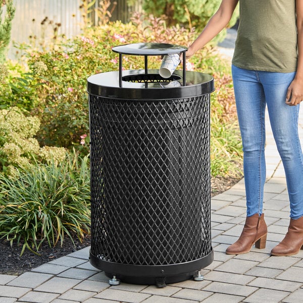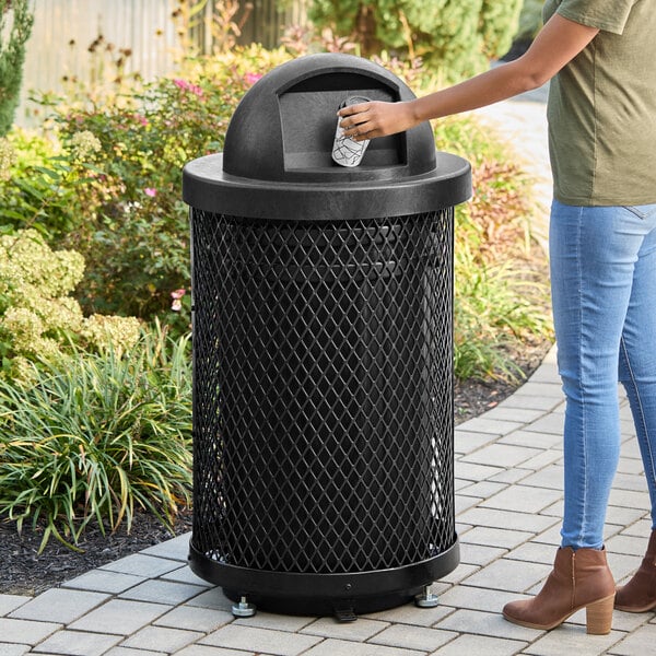 36 Gallon Heavy-Duty Round Black Expanded Steel Outdoor Trash Can with ...